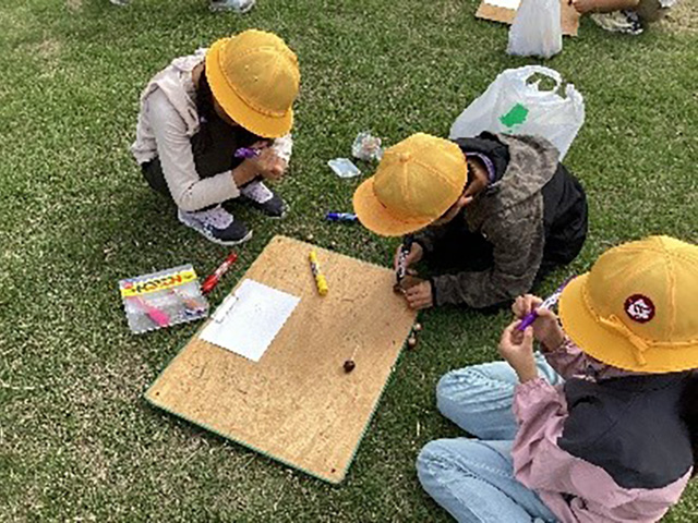 1年生が美濃加茂「文化の森」へ出かけました。どんぐりを拾ったり、落ち葉を集めたりしながら秋を感じることができました。どんぐりごまの作り方を教えてもらい、一人一人が工夫しながら、クルクル回るこまを作ることができました。