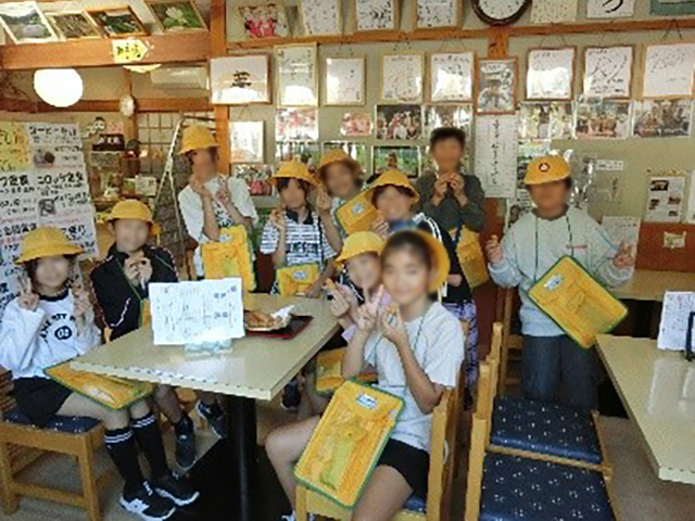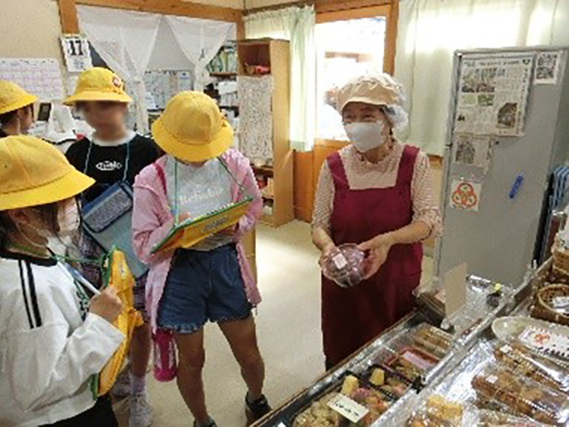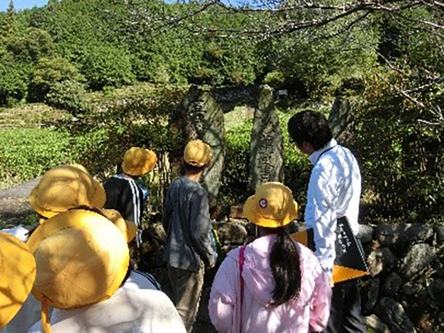 5年生が村内巡りをしました。蟠龍寺(ばんりゅうじ)、白川茶屋、つちのこ館(やかた)、南無阿弥陀仏碑(なむあみだぶつひ)、茶の里 野菜村の5か所をめぐりました。普段、何気なく車で通っている場所にも、様々な魅力やびっくりすることがあることに気付きました。村の歴史を知ることで、先人の方々の思いを知ることができました。また、村にあるお店に並ぶ商品を見て、すべてが手作りのものであったり、添加物を一切使っていないことを知ったりすることで、村の人たちのすごさやあたたかさを感じました。