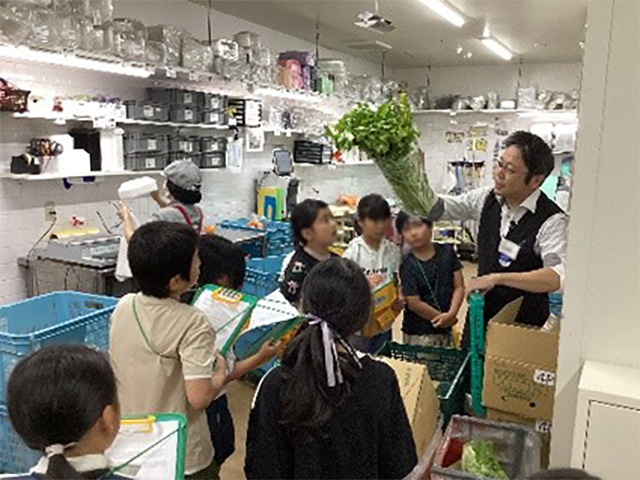 写真:担当職員さんから図書館の説明を聞く子ども達
