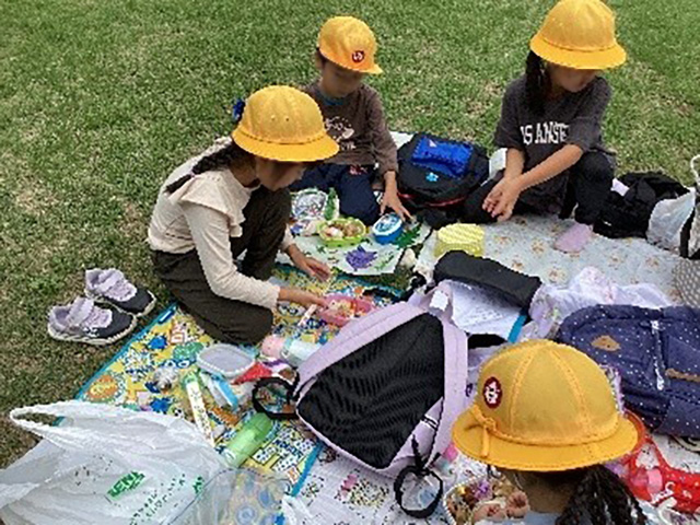 お家の方に作ってもらったお弁当を芝生広場でうれしそうに、そして楽しそうに食べました。