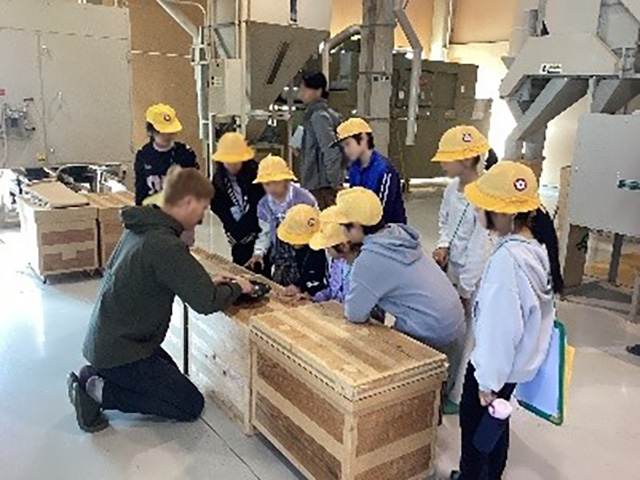 先日、収穫したお米を精米してもらいました。籾殻(もみがら)が付いていた茶色から、真っ白なきれいなお米に変身していきました。工場の中には、大きな機械がたくさんあってびっくりしました。精米していただいたお米を早く食べてみたいです。