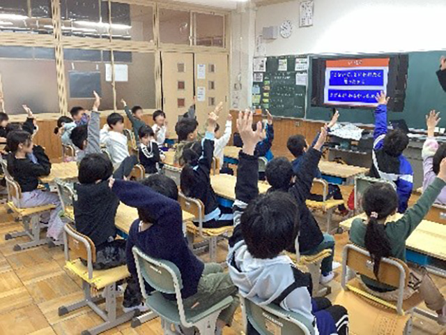 講師の方から、身近にあるスマホ・ケータイは、どんなことができるのか質問がありました。子どもたちは「ゲームができる。」「YouTubeが見られる。」等、普段の生活を振り返りながら、自分の生活も見つめていくことができました。