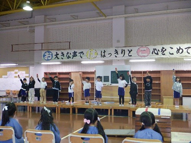 この1年間、自分を出し切るために「学んできたこと」「がんばってきた宝物」と「歌」とを融合させながら発表会の流れを考えました。この発表会に向けて子どもたちは、自分を信じて、仲間を信じて取り組んできました。そして、学習発表会の伝統である「お・は・こ」で頑張りました。これは、今年一年で学んだことを「相手意識を大切にして、自分の思いが自分の言葉ではっきりと伝わる」ように発表することです。「おおきなこえで はっきりと こころをこめて」3つの言葉の頭文字を合わせて「おはこ(十八番)」です。」歌舞伎十八番から来る言葉です。
