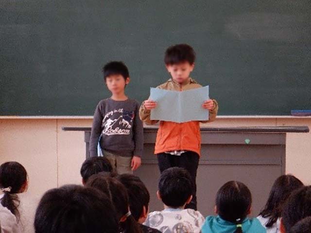 写真:児童代表の話