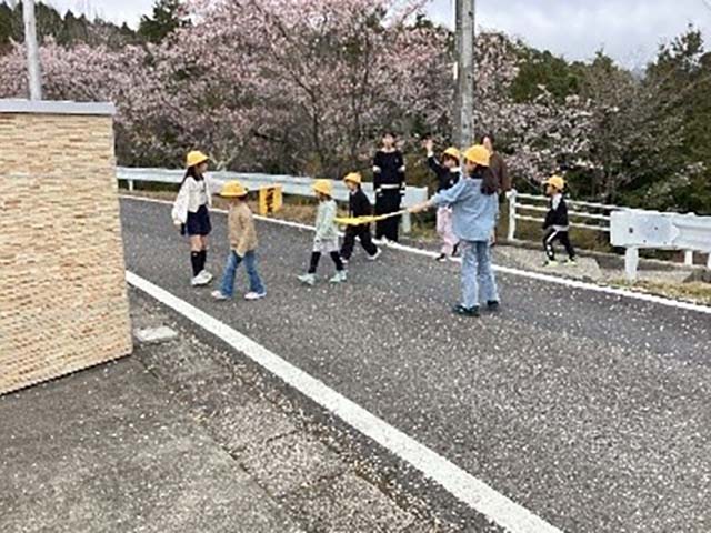 交通安全教室を行いました。交通ルールを守って安全に登下校できるように練習しました。横断歩道で、右・左・右の安全確認を行い、高く手を挙げて渡る練習をしました。