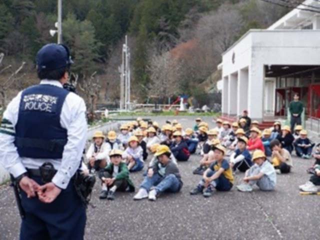 写真:駐在所の方のお話を聞く子ども達
