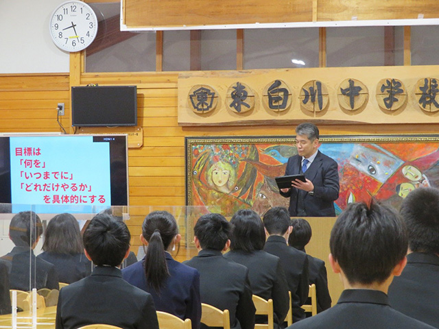 本日より令和7年度最後の学期である3学期が始まりました。年末のインフルエンザの流行がまだ尾を引いているのか、発熱による欠席者が少しあったり、まだ冬休み気分の抜けていない生徒も見受けられたりしましたが、きりっとした雰囲気の中で始業式を行うことができました。