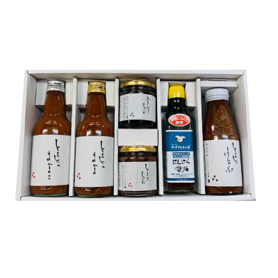| 原材料 | ①トマト・玉ねぎ・塩・醸造酢・白山椒・みりん・砂糖 ②醤油・にんにく・みりん (原材料の一部に大豆・小麦を含む) ③とまと・グラニュー糖 ④ブルーベリー(岐阜県産)・グラニュー糖 ⑤トマト・食塩 ⑥トマト |