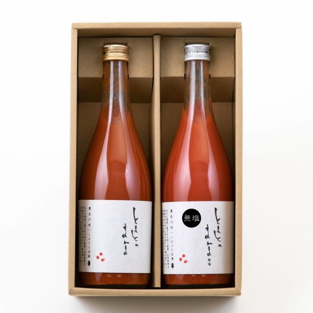 このギフトセットには、コク深い塩入りタイプと、トマト本来の純粋な美味しさが楽しめる無塩タイプの2本が含まれています。