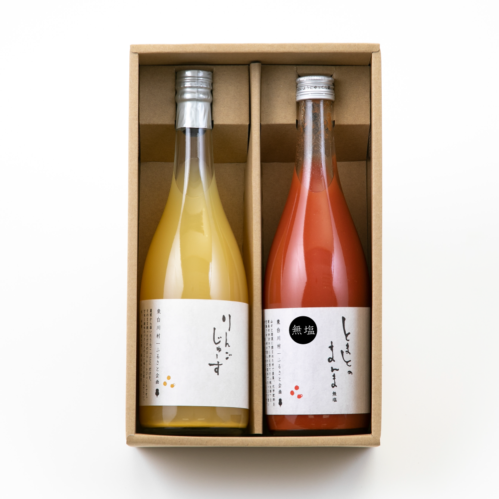 ・無塩とまとのまんま 1本 ・りんごのジュース 1本 計2本のジュースをセットにしたギフト商品です。 贈り物にご自宅用にご利用ください。 全国一律送料込価格